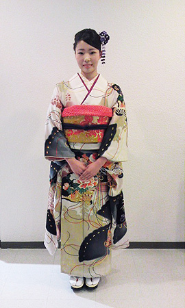 シックな意匠の着物を華やかに着こなせてしまうのは、やはり新成人のお嬢様ならではかもしれません。