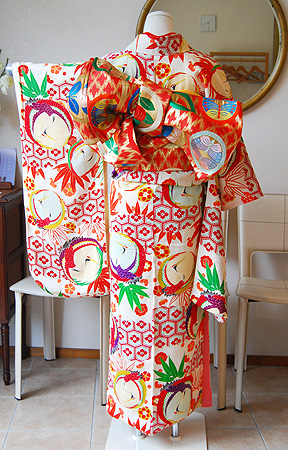 古くから愛されてきた長寿を願う吉祥文様が今らしいコーディネートでハッと目を引く装いになりました。