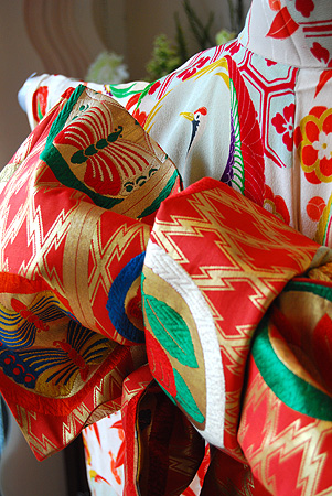 赤い半衿と帯を合わせて主役ならではの装いをお楽しみください。