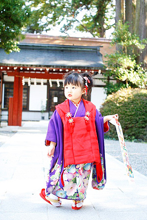 お子様らしい華やかな「赤」をみせたかったら、あえてシックな印象の「紫」を選んでみるのも着物の面白いところです。