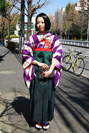 ちょうどお天気も良く、着付け後は歩いて大学まで向かわれていました。