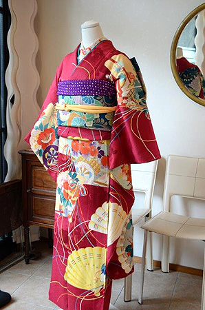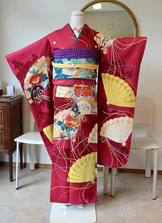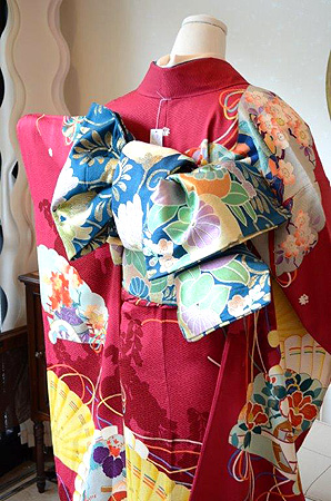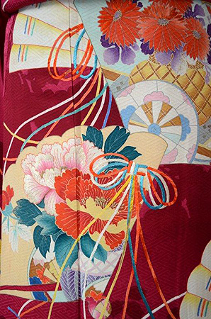 大きな檜扇が印象的で、古典柄なのに落ち着き過ぎずとても華やか。