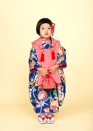お選びいただいた着物は、3歳の着物の中では少し珍しい青色のもの。