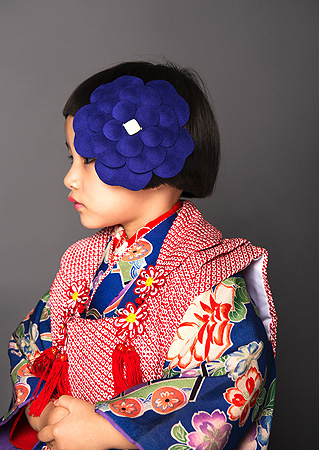 愛らしく揃えられた前髪にアンティークの着物がよくお似合いでとってもキュート♪
