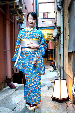 プロのカメラマンの方に写真を撮ってもらいながら、浅草を食べ歩きされるということで、お選び頂いたのは青地に紅型文様のお着物。