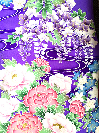 観世水満開花々の図祝い着
