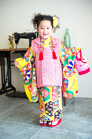 ふっくらと可愛らしい正絹絞り時の被布が華やかな気分を盛り立てます。