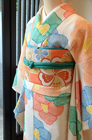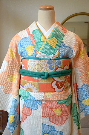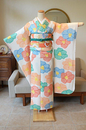 総絞り椿文様正絹振袖総絞り椿文様正絹振袖