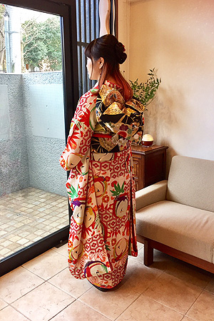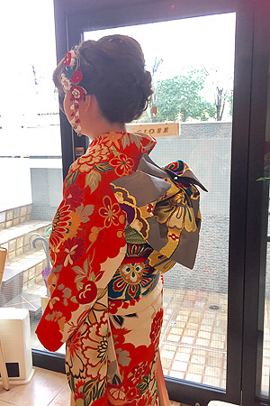 昨日の成人の日、当店では早朝より成人式にご出席されるお客様のお支度させていただきました。