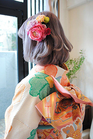 来店された時の少し緊張した面持ちが、カウンセリング、ヘアセット、メイク、着付け…とお支度が進むにつれ次第に嬉しそうな表情に変わっていき、お付き添いで一緒にいらしたお母様方もお嬢様の装いが完成が近づくにつれ、興味深そうに写真撮影をされていました。
