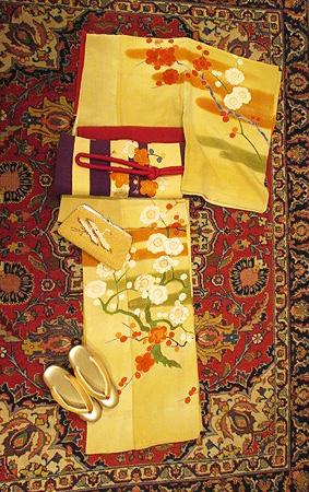着物、帯ともにアンティークのもので、とても素敵ですので(モデルはさておき…)、新年やおめでたい席にとてもおすすめです。