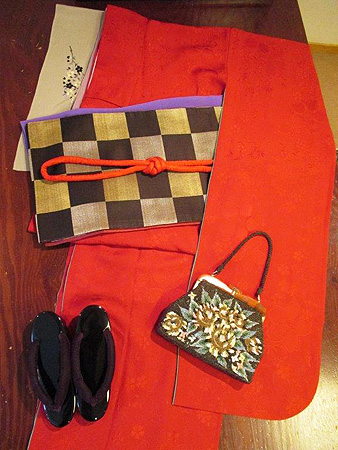 シンプルな無地と市松文様の帯との取り合わせがとても潔く、モダンな雰囲気が蒼井さんにとてもよくお似合いでした。