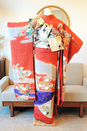 朱色と茶色の中間のような樺色(かばいろ)の地色がこってりと綺麗で、落ち着いた雰囲気が大人の女性にぴったりです。