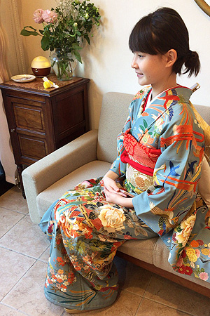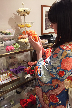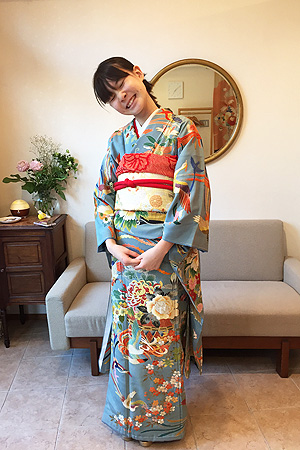 その後、実際に振袖をお召し頂きながら、帯や小物を合わせ、寸法を確認いたします。