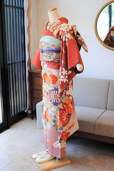 この時代ならではの、裾と袖を中心に描かれた文様が、立ち姿と椅子にお掛けになった際とで、違った趣にさせてくれます。