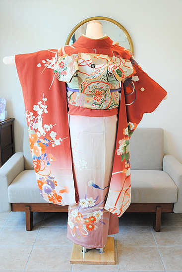 四季の花籠車文様ぼかし地振袖 レンタル一式 160,000円+税