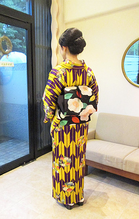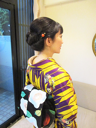 ヘアスタイルもシンプルではありますが、クラシカルなシルエットが今回のお着物の雰囲気にピッタリで、「映画のワンシーンに登場しそう!」とお話も盛り上がりました。