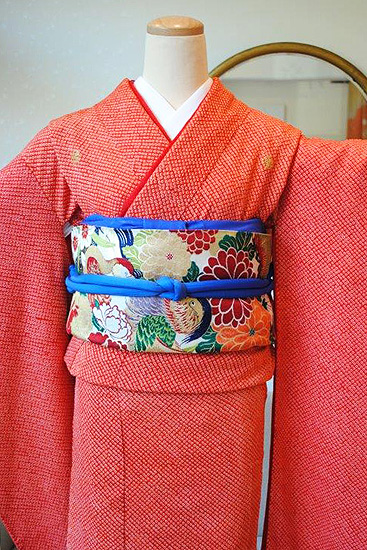 赤い長襦袢を重ねることにより、主役の色である赤の印象がさらに強まり、より一層華やかにお召し頂けると思います。