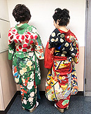 明るいお二人それぞれに、遊び心あるおめでたい色彩のアンティーク振袖が本当によくお似合いで、関係者の方々からもご好評を頂き、とっても素敵でした!