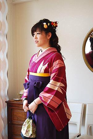 着物はとても華やかなので、髪にも髪飾りなどでボリュームを出すとぴったりと決まります。