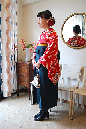 卒業式の定番の矢羽文様のお着物や、色鮮やかなアンティーク着物。
