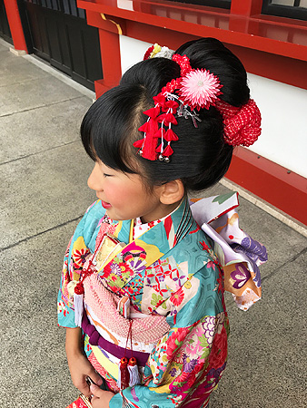 七五三のお嬢様は、お衣裳と共にヘアスタイルや髪飾りも重要ですね。