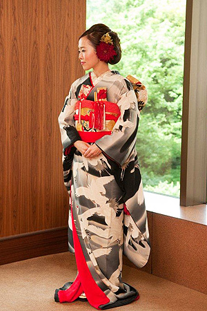 縞のしごきは、ご新婦様の好みを生かしたちょっぴり個性的な味付けです。