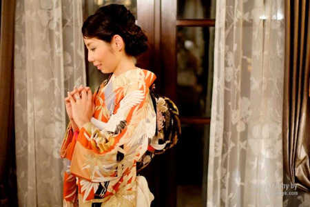 日本髪にきりりと角隠しをして…これぞ日本の美しい花嫁。